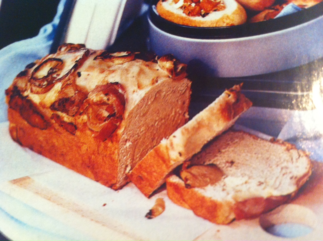 Place the flour, salt, olive oil and yeast mixture in a bowl and mix until the dough forms. Knead on a lightly floured surface for 5 minutes or until smooth and elastic, adding a little extra flour to the dough if it becomes sticky. Place the dough in a bowl, cover loosely with plastic wrap and set aside for 20 minutes or until doubled in size. Place dough on a lightly floured surface and gently knead in half the bacon, onions and cheese. Transfer to a lightly greased 22 x 9cm (8 1/2 x 3 1/2 in) loaf tin and top with remaining bacon, onions and cheese. Bake for 35 minutes or until golden and bread is cooked through. Serves 4